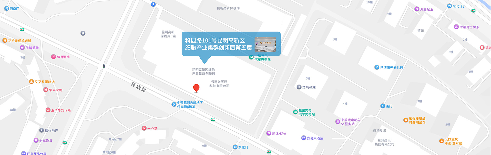 昆明市科园路101号昆明高新区细胞产业集群创新园第五层(佳康赛尔)